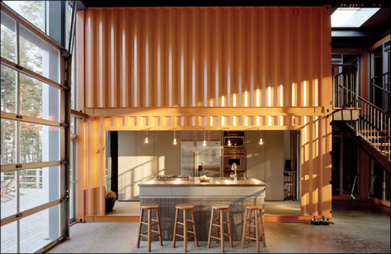 This self-contained studio is appropriately contained in a shipping container. Perfect for back-to-basics living, or even for a teenager's pad in the backyard. Plus, you can close it up when no in use - or to transport cross-country! That's pretty convenient.