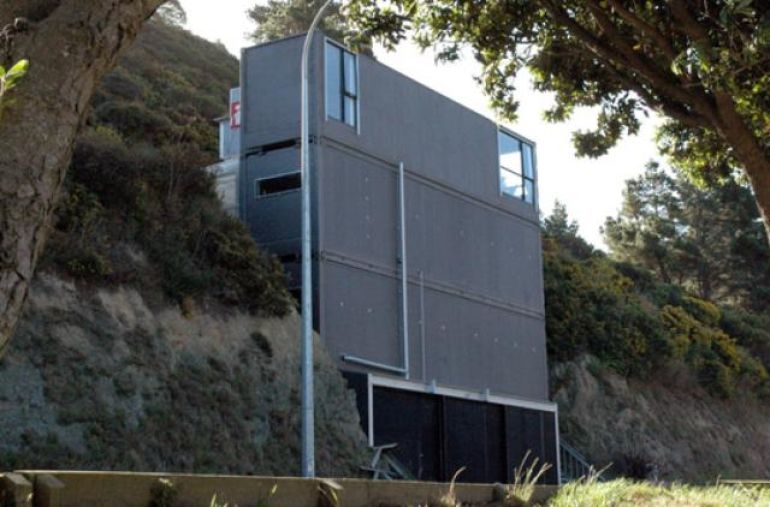 This house is a real cliffhanger. Clinging to the edge of a mountain in New Zealand, this shipping container house might not look like much from this angle...