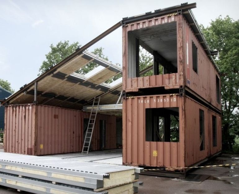 Your new shipping container can even have waterfront views. Here the designer has used the structural strength of the container to cantilever the units over the water, making for the perfect waterfront pad. What's more, the roof is planted with grasses to blend the whole building into the surrounds.