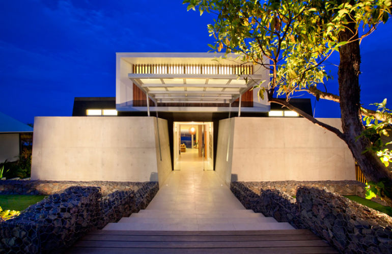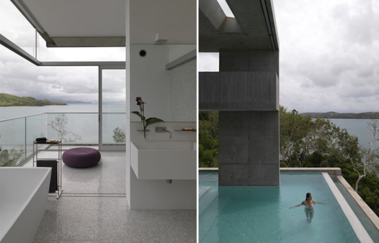This unbelievable house in the Whitsundays is made from concrete and travertine, to complement the tropical Queensland heat and rain.