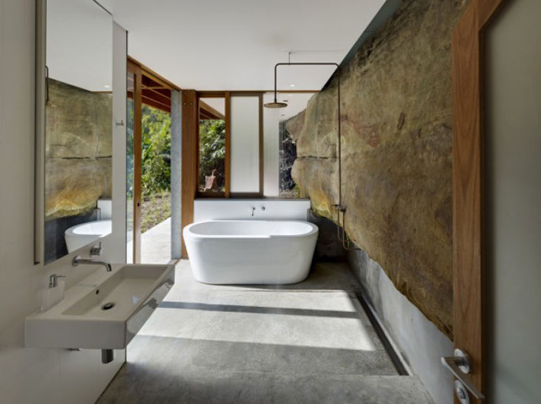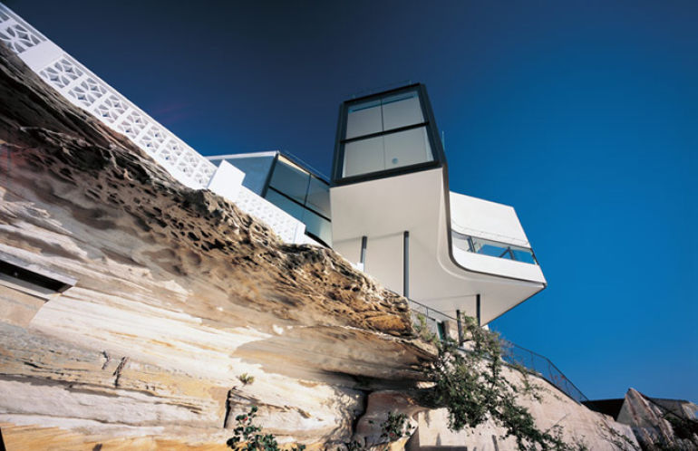 Another incredible house built on the side of a cliff - but this Palm Beach, NSW house actually incorporates the cliff face into the interior of the house as a wall.
