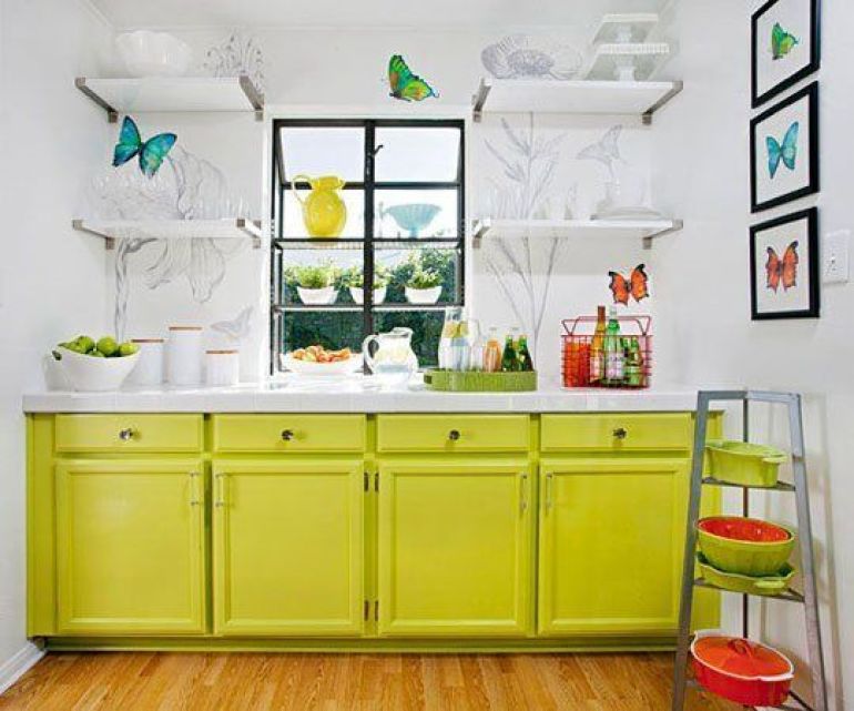 Everything looks better in colour! Be brave, choose a bold colour for your kitchen. Green always works well, because it's fresh and has food vibes. But yellow or red can work equally as well.