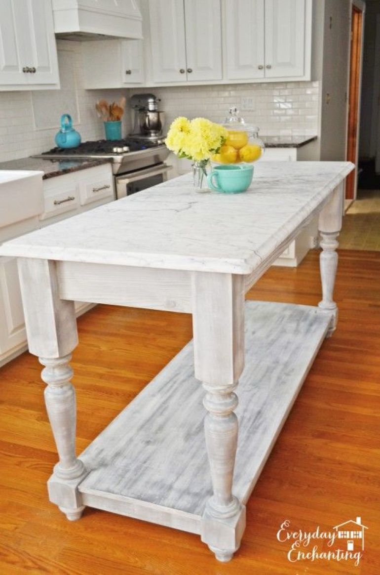 Add a bit of class and charm to your renovated kitchen by installing a custom-made marble island bench that looks more like a table. An alternative is to find a table with beautiful legs and have a bench top made for it -- the problem with this approach is tables are usually lower than bench tops, so keep that in mind.
