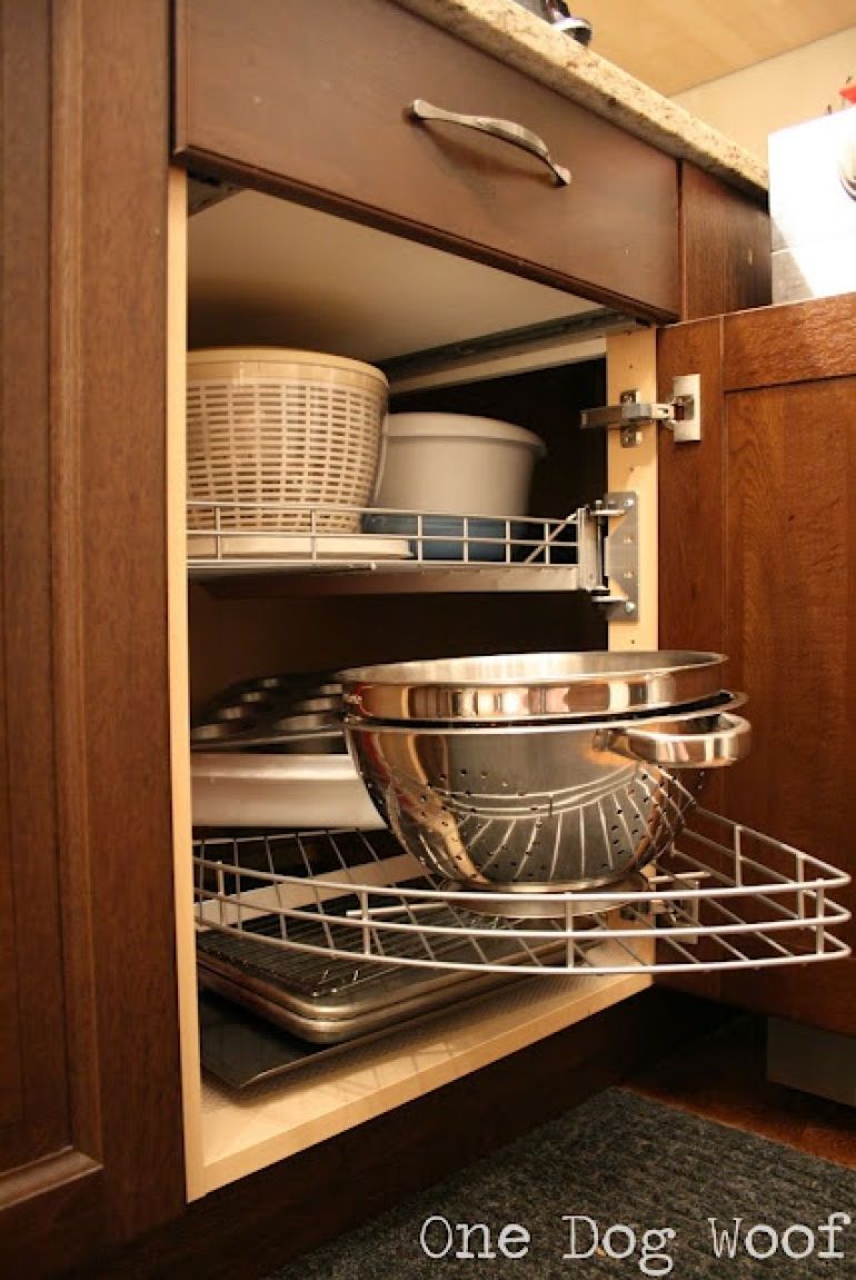 My world was rocked when I discovered this was a possibility. Sure, you waste a little bit of space, but the ease of accessing all your stuff makes that ok. You'll need a professional cabinet maker for this one -- you can't get these corner drawers off the shelf at IKEA (yet).