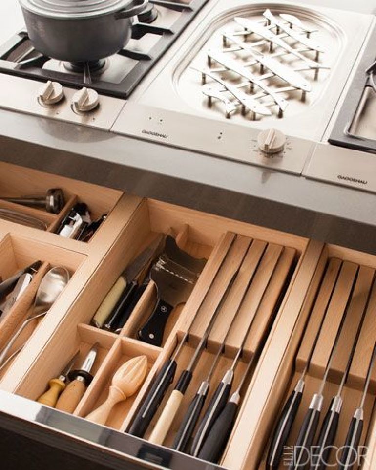 When designing your new kitchen you have the opportunity to plan a space for everything. Really well designed drawers and cupboards ensure your kitchen stays neat and tidy, because everything has its own place. I love these bento box-style drawers. They are a neat freak's dream!