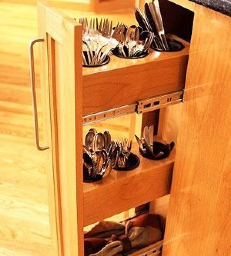 Brilliant. It actually doesn't make much sense to keep cutlery laying down in drawers. Now you can be as organised as an RSL and keep all your cutlery accessible in a thin space that might otherwise go to waste. That will free up an extra drawer for your new vegetable storage (see #6).