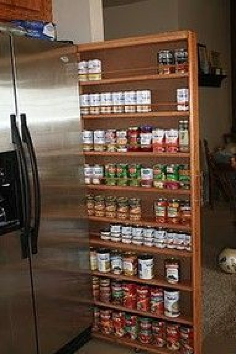 While we're on the sliding roll, here's a thin storage solution for spices and dried herbs. If you have a skinny space beside your fridge a cabinet maker could easily whip up a Rolls-Royce spice rack for you. Now you just need to explain to your teenage son why you no longer need his 'beautiful' hand-made spice rack.