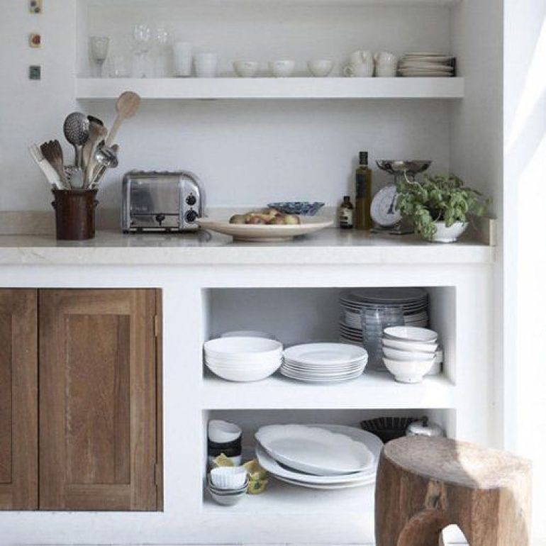 This is a simple but clever idea to keep your crockery and salad bowls close to both the kitchen and dining area. It looks great, and is super functional to boot.