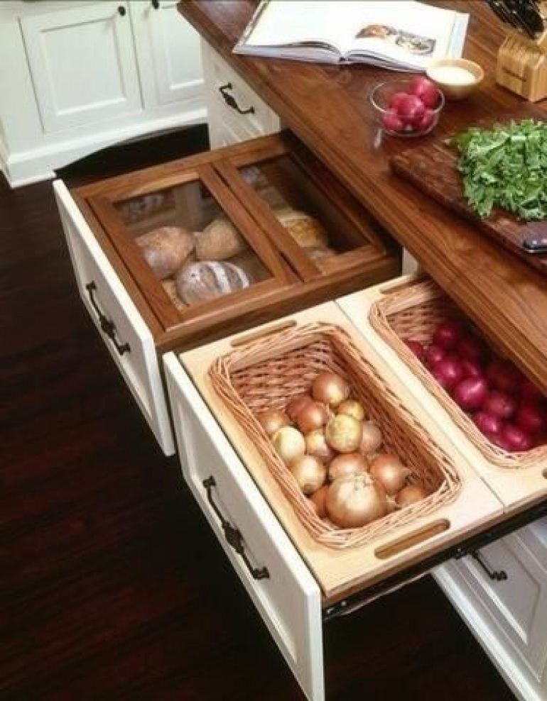 What a great solution for onion and potato storage! If you've got potatoes coming out of your ears (because you can't restrain yourself at the farmer's market), don't worry. Take your underutilised drawers and give them a sense of purpose. Onions, potatoes, even bread can be safely tucked away in one of these clever hidey holes.