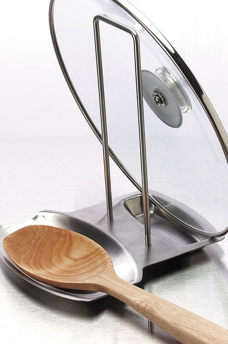 This is an easy DIY job. Some pegboard behind the stove for saucepan storage.