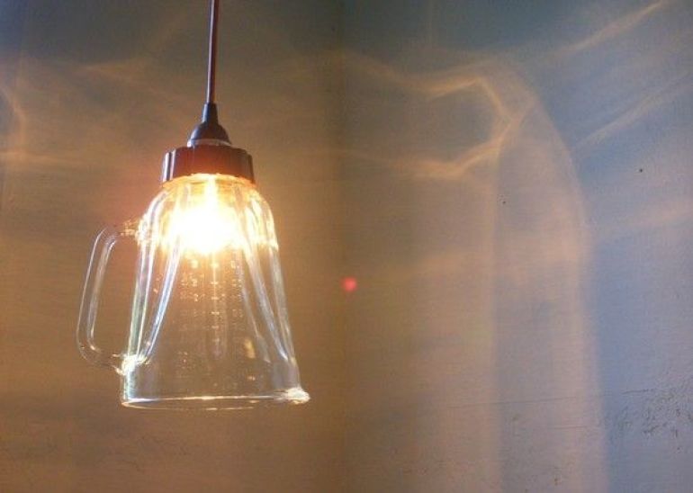 Hopefully you saw our (too much fun) wisk lights featured a few weeks back. Well now there's a competitor for the kitchen's coolest light source. You can pick this blender creation up from Etsy. Or you can get an electrician to turn any disused kitchen appliance into a classy lighting feature.
