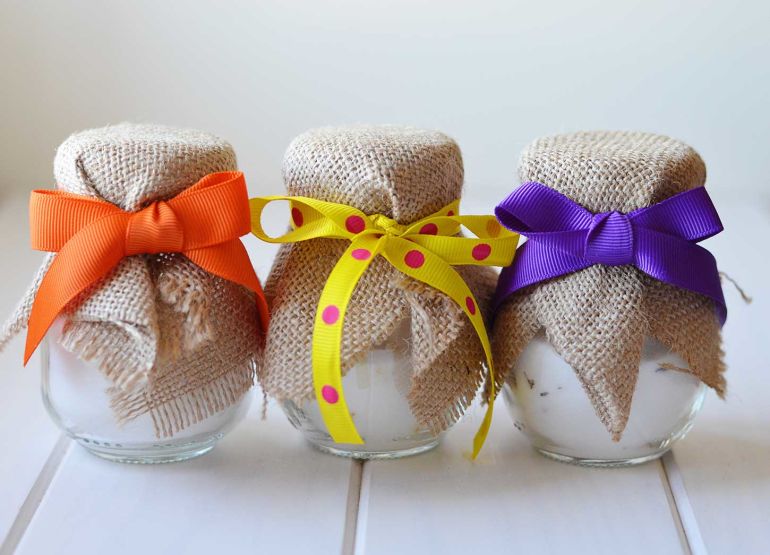 all-natural air-freshening jars! All you need is some baking soda, a few old containers and scraps of loose-thread cloth. Baking soda is a neutraliser and it absorbs strong odours without the need for harsh chemicals. Simply fill the jars with baking soda and sprinkle with your own choice of flavourings - for example, vanilla bean, cinnamon sticks, cut citrus fruits, sliced ginger, peppermint, rosemary and many more. You can also mix in essential oils to distribute a scent equally across the powder. By fixing the cloth to the top of the jar, it allows for airflow in and out of the container, thereby quickly spreading these scents around a home. Substitute perforated cardboard if need be. You’ll notice a real boost to your mood with these recipes and it barely takes a minute to put together.