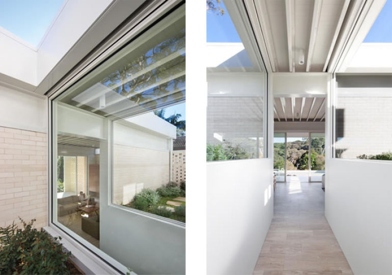Deep reveals and overhangs allows the house to be predominately heated and cooled passively by the sun.