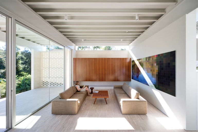 The canopy element of the house floats gracefully over what is essentially an open air pavilion once the generous sliding doors are opened.