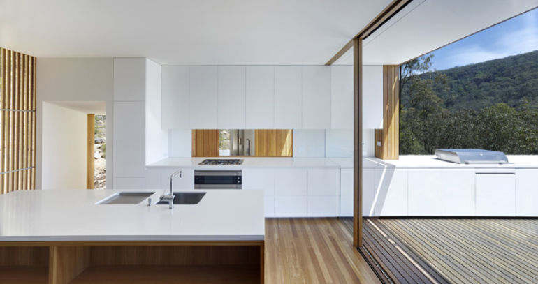The kitchen bench seamlessly continues outdoors to become a BBQ space, visually expanding the internal space.
