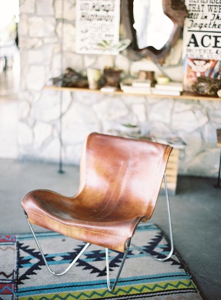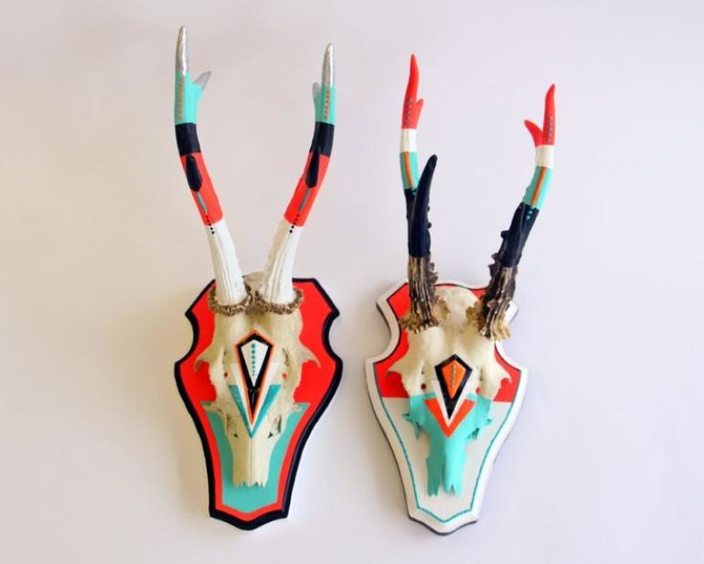 A fancy design element is this pair of deer skull with painted Aztec patterns. It’s classic, yet modern at the same time – refreshing.