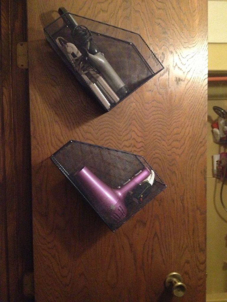 If you let your organizer diva out, you’ll see that organizers can be used in different ways. Take this wire desk organizers, for example. Instead of sitting on top of desks, they carry hair-styling equipment while hanging by the door.