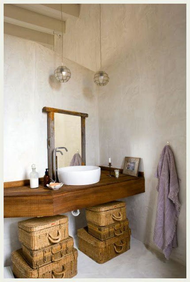 Get that traveller feels inside your bath. Stuff your stuff inside artisan boxes and pile them up under the sink -- chic and smart.