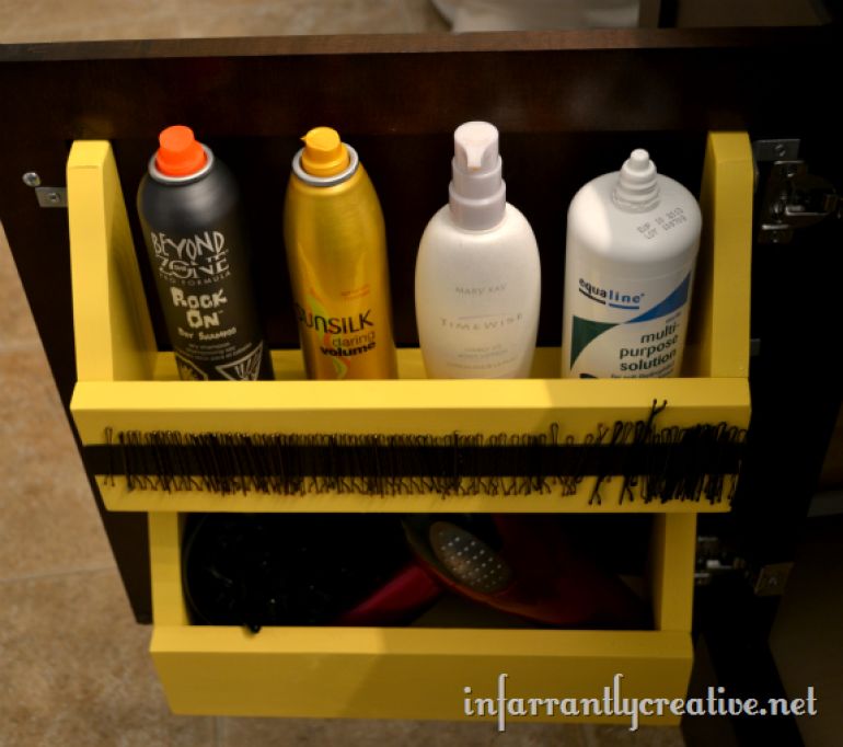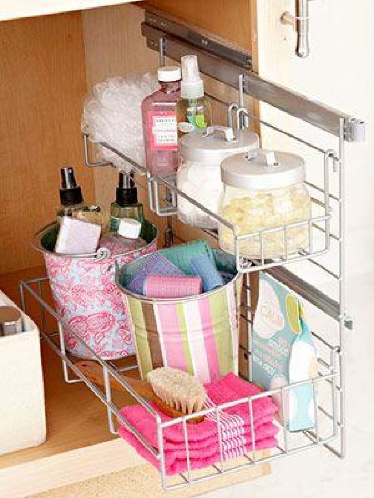 7. Slide Out Shelves - http://decorology.blogspot.com/2010/01/cute-ideas-for-small-bathroom-storage.html