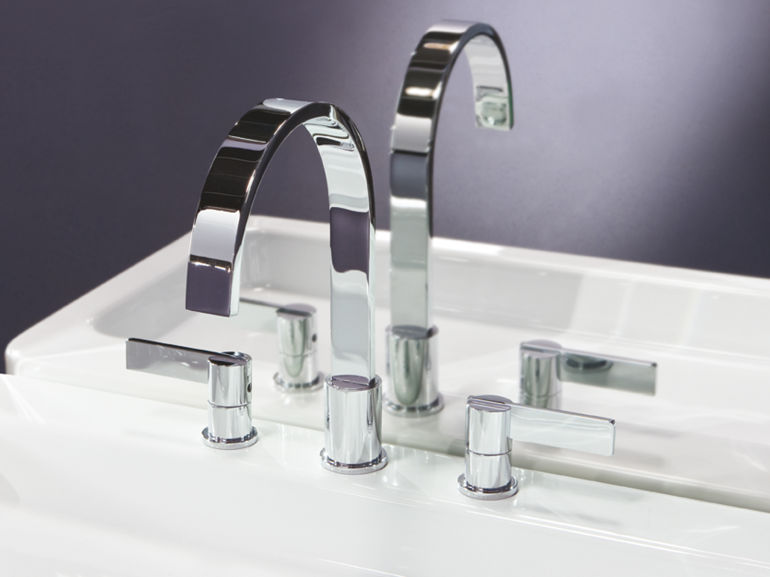 A more modern design, these taps are excellent at providing a steady temperature of flow which may be especially important for households with children and the elderly at a greater risk of scalding. Mixers come in two varieties, the monobloc and the single lever. Monoblocs feature two levers for controlling the water flow, usually on either side of the spout, while single lever styles feature only one, which is maneuverable for pressure and temperature. In both kinds, the taps and spout form a single unit.