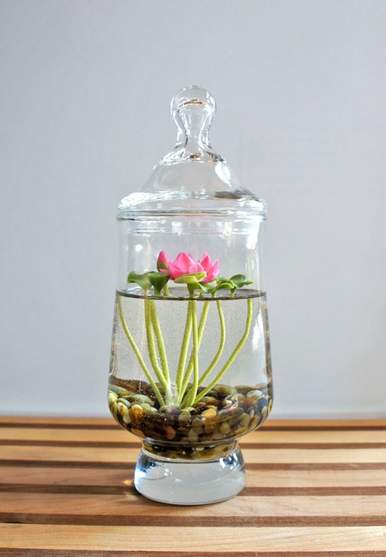 Don't assume terrariums need to be a dry affair, either. In this case an aquatic plant makes a beautiful scene.