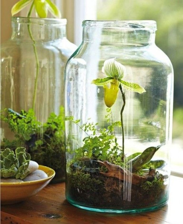 Orchids grow really well in the humid conditions of a terrarium, and look stunning.