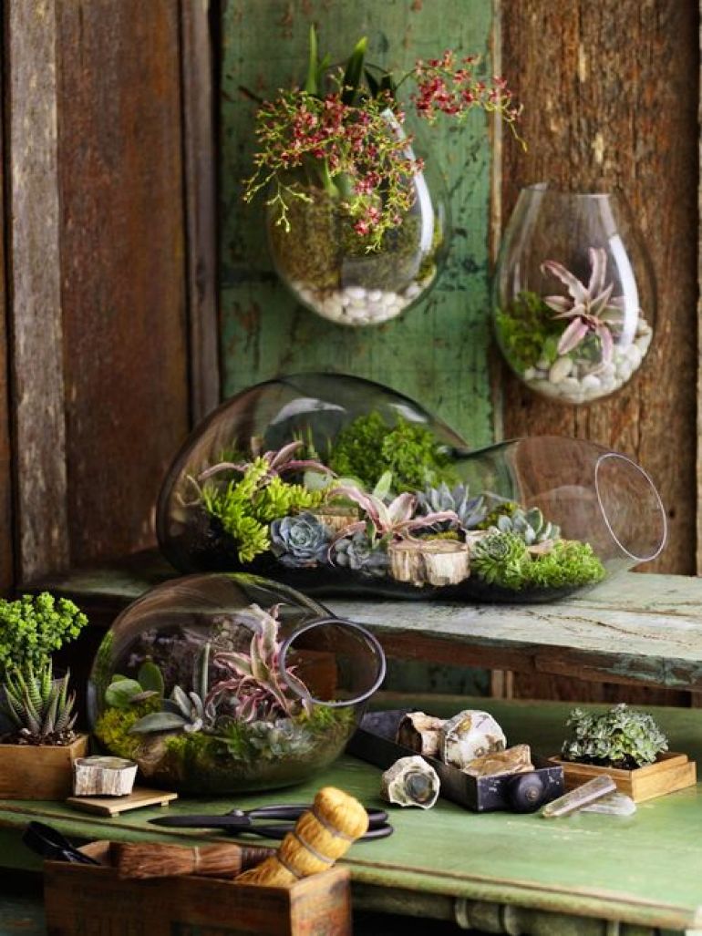 Not really a terrarium, but a good way to bring a bit of low-maintenance greenery into the house.