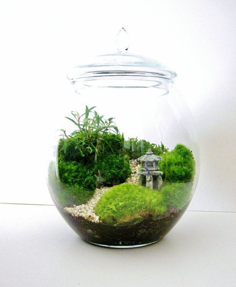 By using a sculptural glass jar, you can really make an unusual and beautiful terrarium.