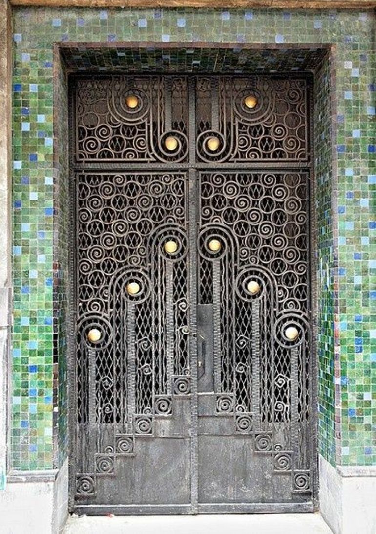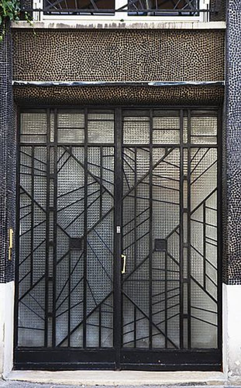 Art Deco door to the artists' studios at 5 Rue du Dr Blanche, designed by Pierre Patout.