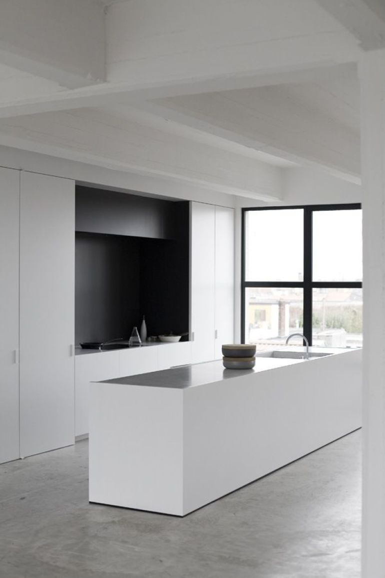 Much more minimal that the previous kitchen, but there's a balance of tone and texture here that makes this a beautiful and intriguing space. Also, the island bench looks like it's floating (that's great detailing, essential for minimalist design).