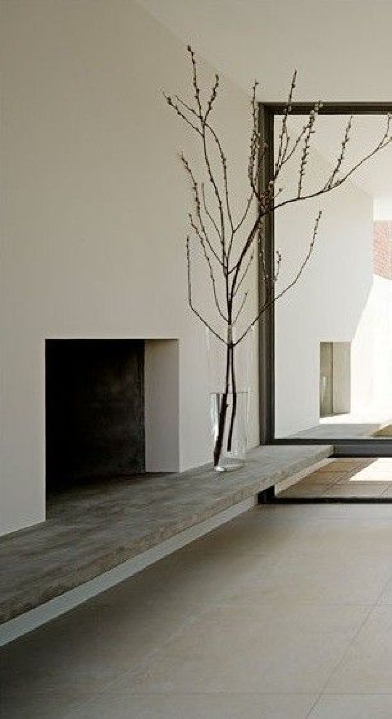 The balance and composition of this fireplace is stunning. The touch of natural greenery keeps the whole look human.