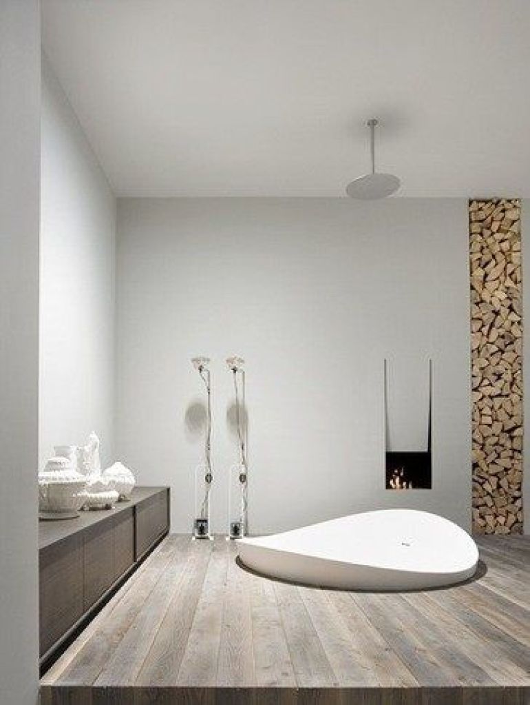 All the money saved on glass and mirrors has been poured into a decidedly sculptural bath. Warm, yes. Practical? It's arguable…