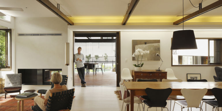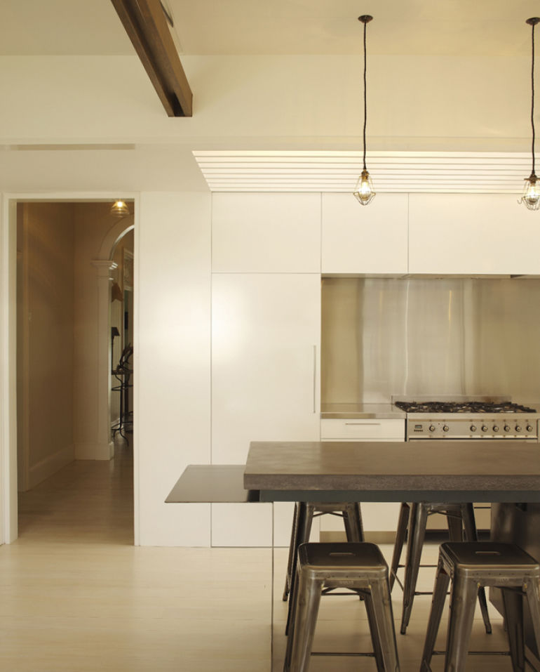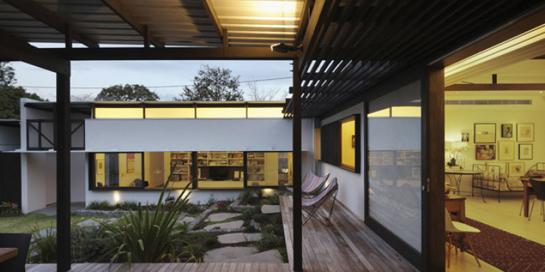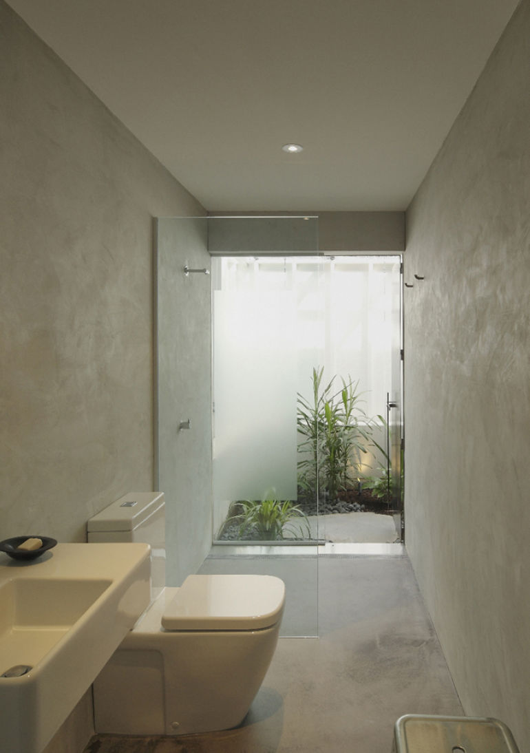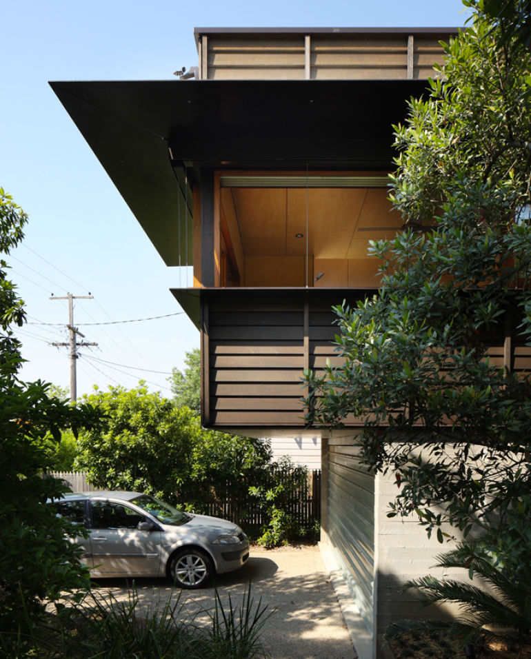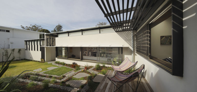 This inovative extention to a traditional Queenslaner creates new bedrooms and living areas for the family. An internal courtyard has been created to ensure a lush and cooling vantage point from all parts of the house. The extension is a contrast to the granduer of the old Queenslander and is more of a simple 'bush-house' (but executed in a very stylish, modern way. Initially old is blended with new in the kitchen, but as the extension cascades down the site, it culminates with the very modern concrete floors, render and steel plate in the bathroom.