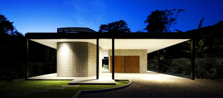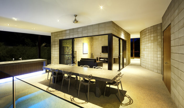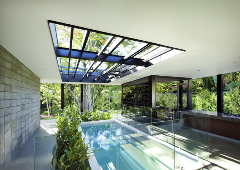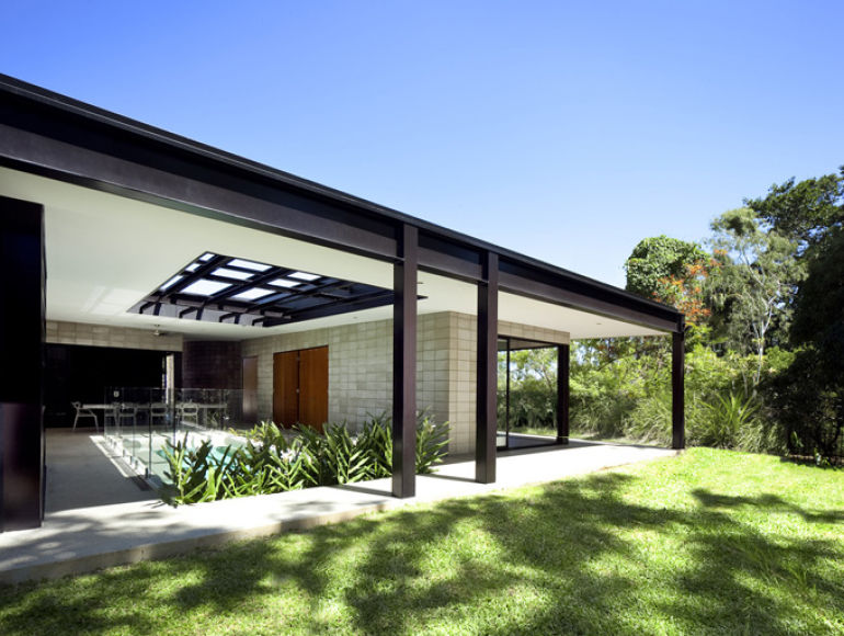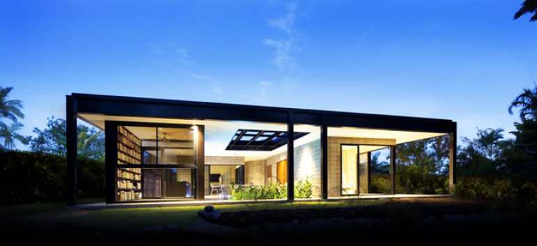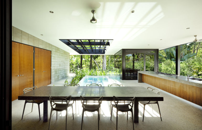 If you think that this house shares a similarity to Philip Johnson's famous house of the same name, you'd be right (and you've won me over with your astute knowledge of architecture). The (-) Glass House is a modern reinterpretation of the original Glass House with a tropical Queensland twist - open air spaces and almost no glass. The (-) Glass House's simplicity and openness make it perfect for the Queensland's humid climate. Concrete blocks, a simple steel structure, floating roof and it's openness to the environment all add to this home's stellar appeal. Not to mention that pool looks pretty inviting!
