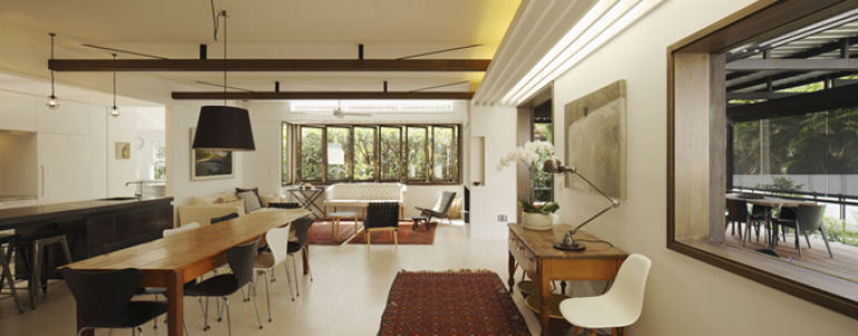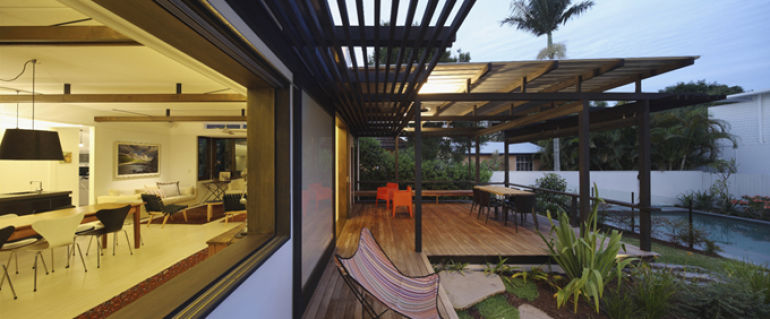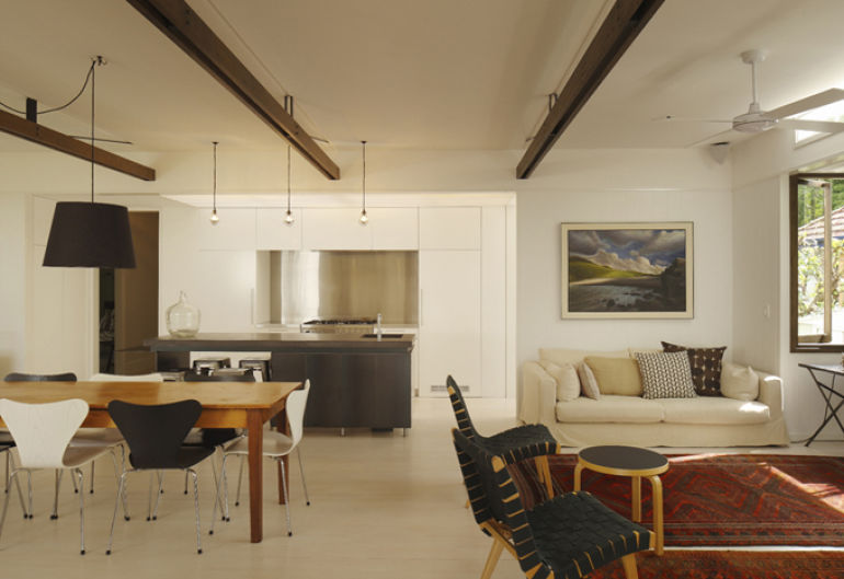 Modern Queensland houses retain the characteristics of the traditional, climate appropriate 'Queenslander' style, with unashamedly modern flourishes. The Yaroomba House combines rich timber interiors and lofty spaces with a lofty, shading roof and large windows to connect the indoors with the lush garden and outdoor living space. It's unquestionably Queensland, but also very livable. The interior remains breezy and cool, even when it's hot and humid outside.