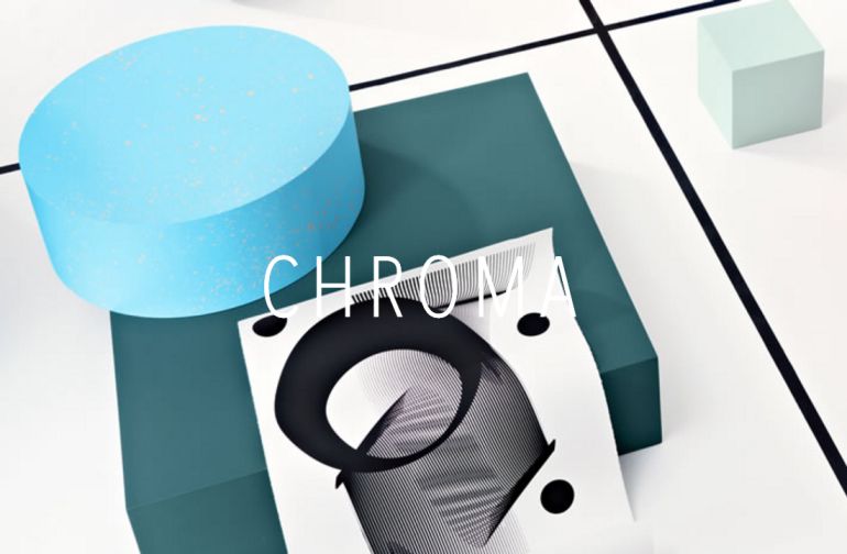 Chroma is an exciting and striking palette that takes inspiration from the Memphis and Bauhaus movements. Peach, melon, yellow, teal and blue form graphic elements combined with optical illusions, layered materials and reflections.