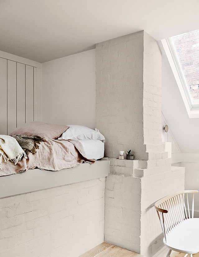 Painted exposed brick & pure linen towels are the embodiment of this theme