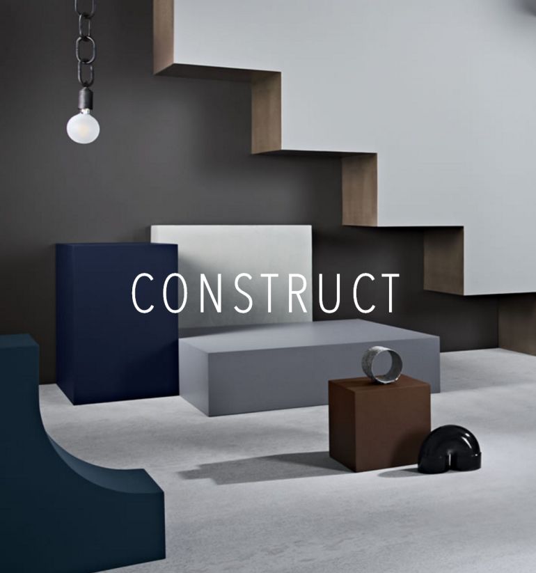 Construct is inspired by architectural angles and the use of industrial materials such as concrete, steel and galvanised finishes. These elements combine with subtle, more tonal colour palettes that can create the illusion of depth and accentuate interior details.